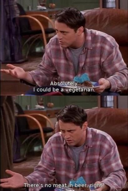 As I wrap up my Friends marathon *sobs*, I have to say that I really found Phoebe’s vegetarian ways fascinating. There were times when I was like “HELL YEAH PHOEBE!” and yes, times when I put my hands over my face and said “Oh no… Phoebs!” On more than one occasion, Phoebe is faced with eating meat (and yes, even gives in). This happens to a lot of people who are just starting out, and we’re here to tell you: IT’S NORMAL! It’s not about being perfect, but about doing the least harm and most good. So I thought it might be fun to go over the few instances in which Phoebe Buffay represents the majority.